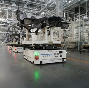 该方案采用“三明治式”设计理念,应用于焊装前机舱自动岛的运载,是汽车领域工艺柔性制造的创新之一。此案例通过双舵轮驱动,光学色带导航及二维码定位方式,可实现±3mm高精度定位,背负式运载,超级电容在线充电模式,从设计端杜绝AGV下线,提高使用率,助力提升车间全自动化、安全、高效、柔性生产!