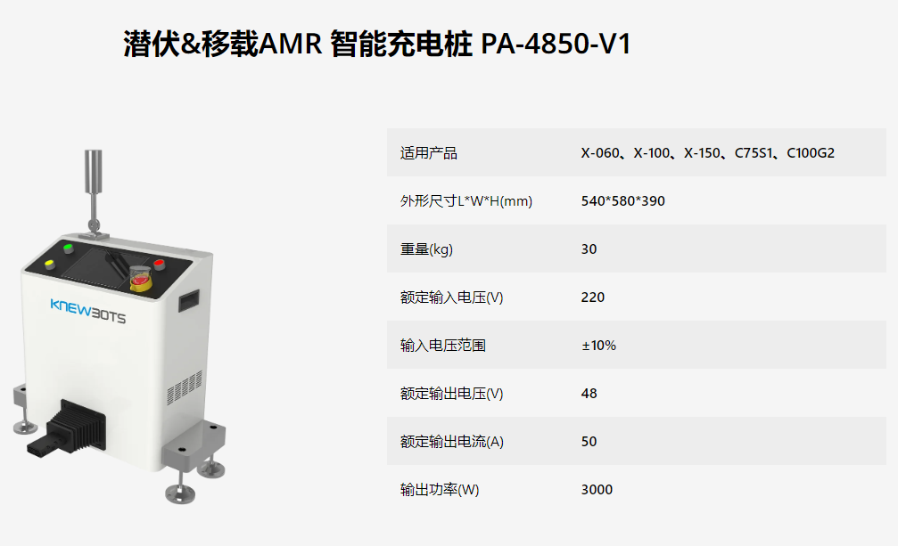 潜伏&移载AMR 智能充电桩 PA-4850-V1