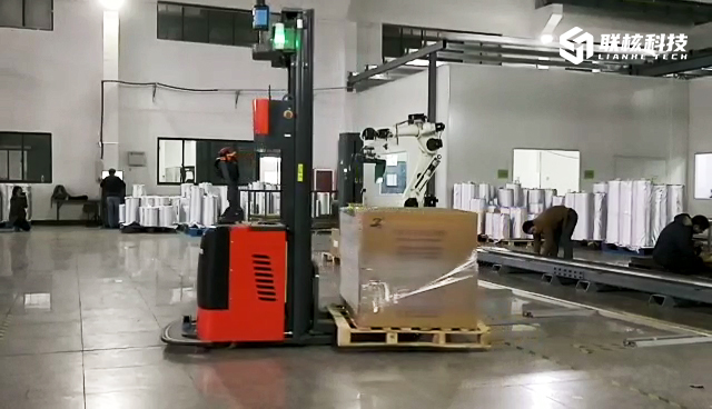 特点:前移式无人叉车的设计使其能够在狭窄的通道内进行操作,非常适合缓存仓库中紧凑的存储环境。