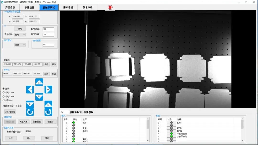 特点:运动程序运行在TRIO中, 上位机只需调用接口函数, 用户只需开1个视觉软件即可实现机器人和视觉的调试应用。