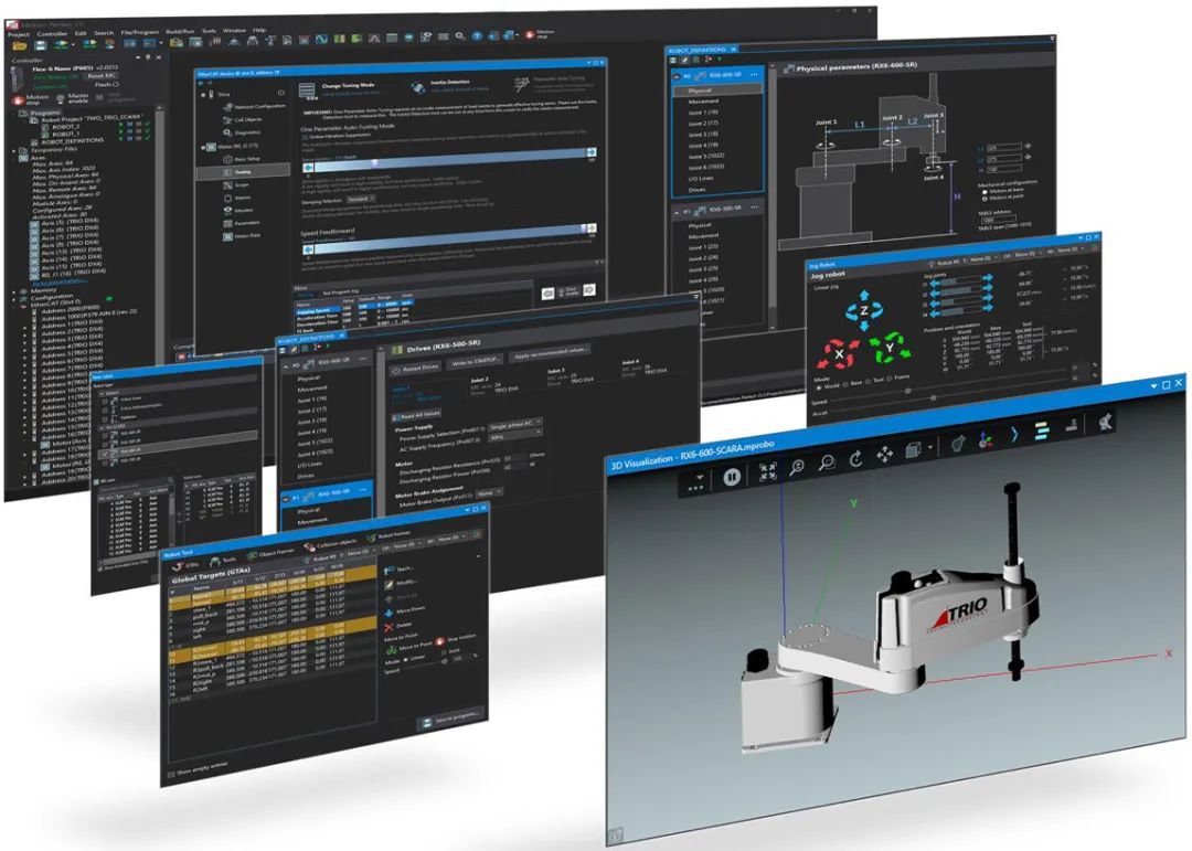 软件:TRIO Basic +DLL文件或ActiveX控件集成了机器人调试的视觉软件;