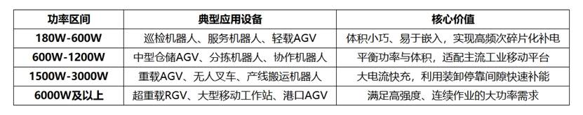 在智能制造与智慧物流的演进中,一个清晰的趋势正在显现:越来越多的工业装备正在摆脱线缆的束缚,走向自主移动。然而,不同装备对充电功率的需求天差地别——巡检机器人只需百瓦级补能,而重载AGV、无人叉车则需要数千瓦的快速能量注入。单一功率的产品无法满足多元场景。鲁渝能源推出180W~6000W全功率段大功率无线充电解决方案,以覆盖工业全场景的产品矩阵,为每一台移动装备提供精准匹配的“无线能量”。