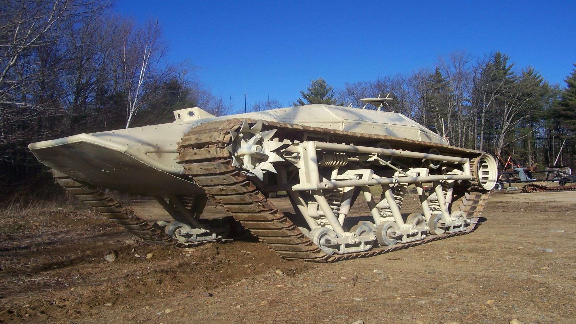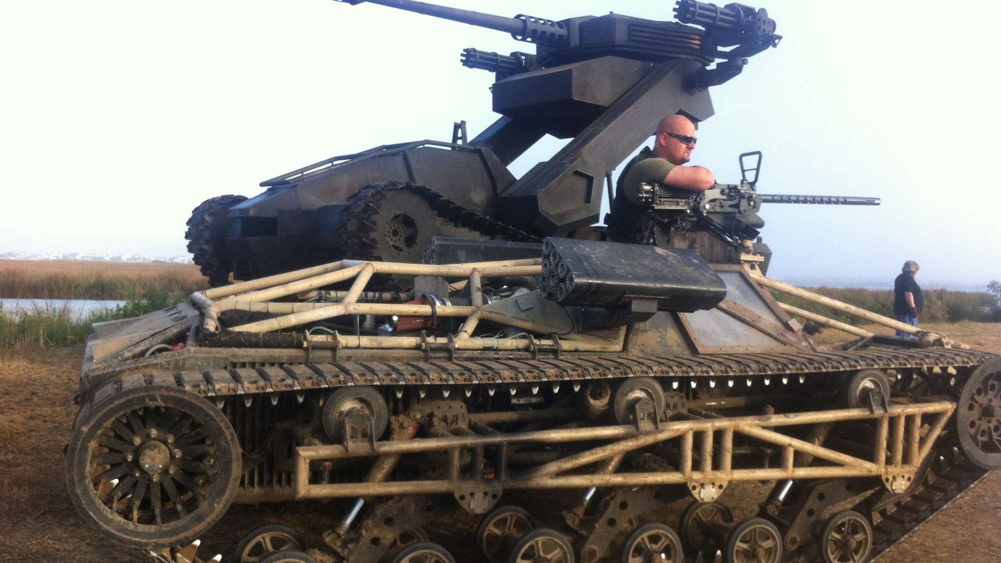 1996 年大学毕业后,Geoff 和 Mike 成立了自己的摇滚乐队,名为“Two Much Trouble”。他们不想在普通场地演出,所以他们创造了自己的移动舞台。他们乘坐一辆全尺寸的校车并安装液压装置,将一堵墙降低为一个舞台。随着杰夫和迈克在一艘商业渔船上工作并继续他们的乐队,他们对越野车的兴趣和爱好开始增长。他们的第一个创作是轮式四轮车——霸王龙和哥斯拉——他们建造世界上最快的履带式车辆的愿景开始了。