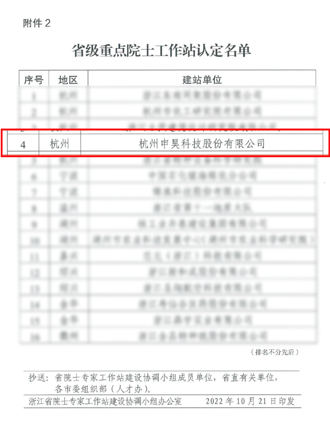 近日,根据浙江省院士专家工作站建设协调小组发布关于“2022年度重点支持的省级院士工作站名单(省级重点院士工作站)”的通知,全省仅16家企业入围,申昊科技院士专家工作站成功入围“省级重点院士工作站”!