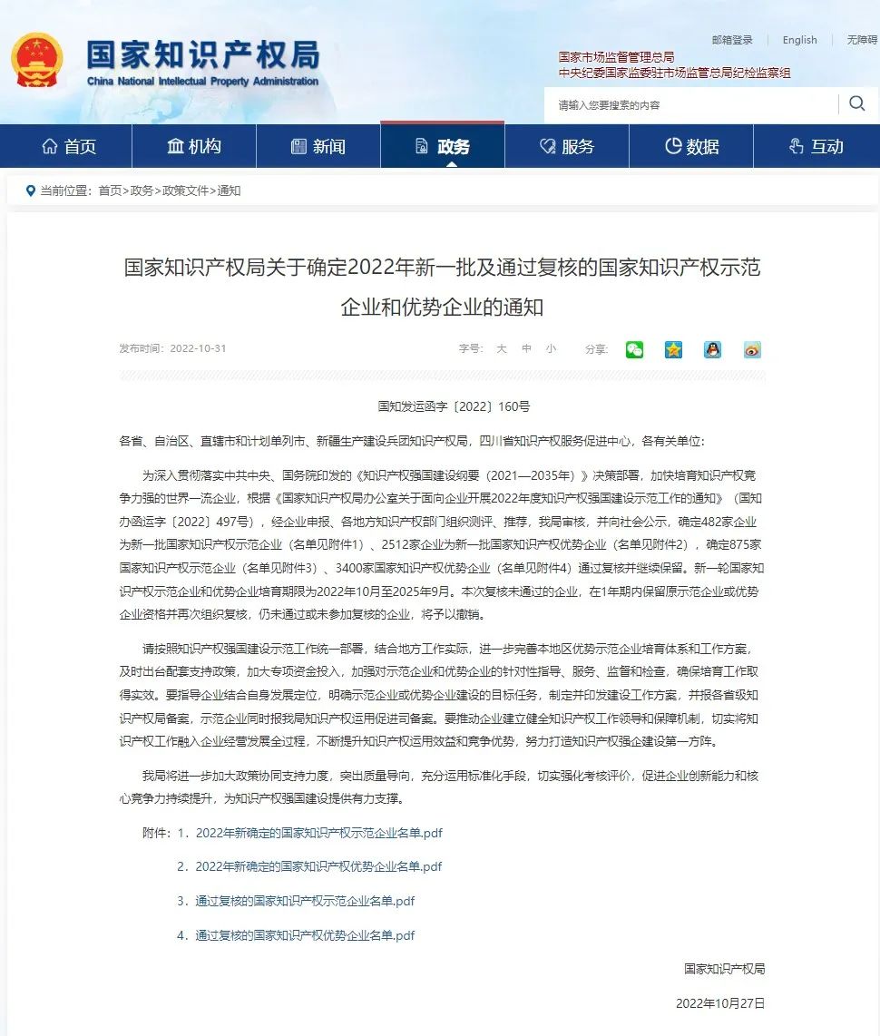 日前,国家知识产权局发布了“关于确定2022年新一批及通过复核的国家知识产权示范企业和优势企业”的通知。经层层评审,申昊科技凭借研发创新和知识产权管理实力,荣获2022年度“国家知识产权优势企业”称号。