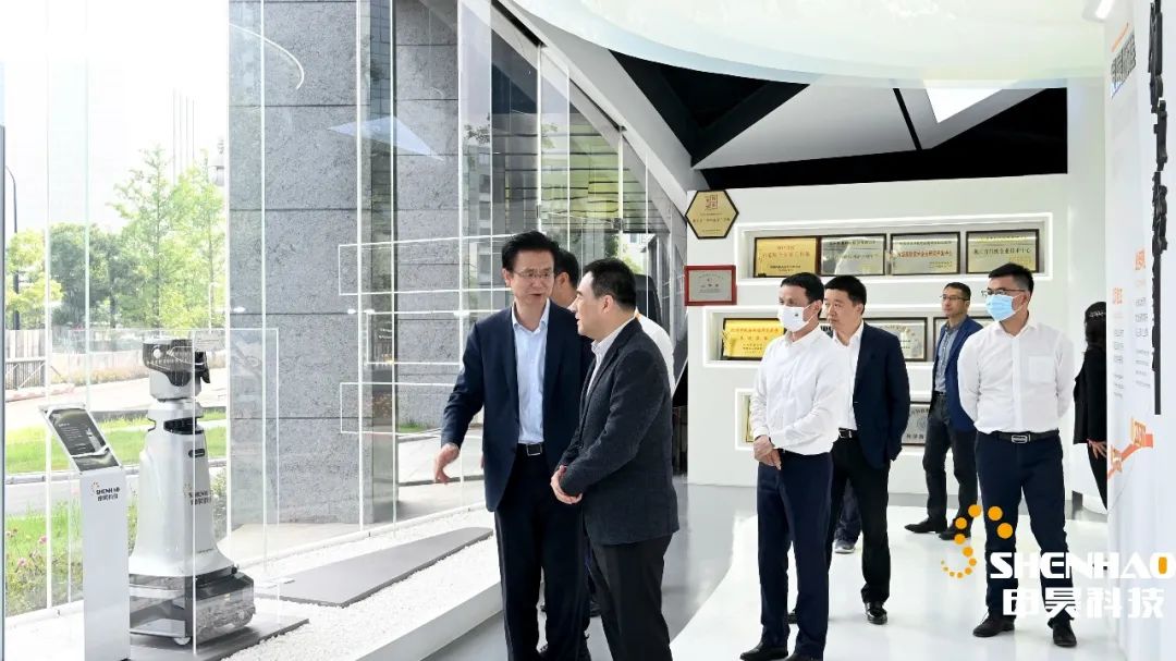 5月17日,杭州市委常委、市纪委书记、市监委主任陈一行带队到申昊科技走访调研,杭州市委常委、余杭区委书记刘颖等陪同,申昊科技董事长陈如申接待。