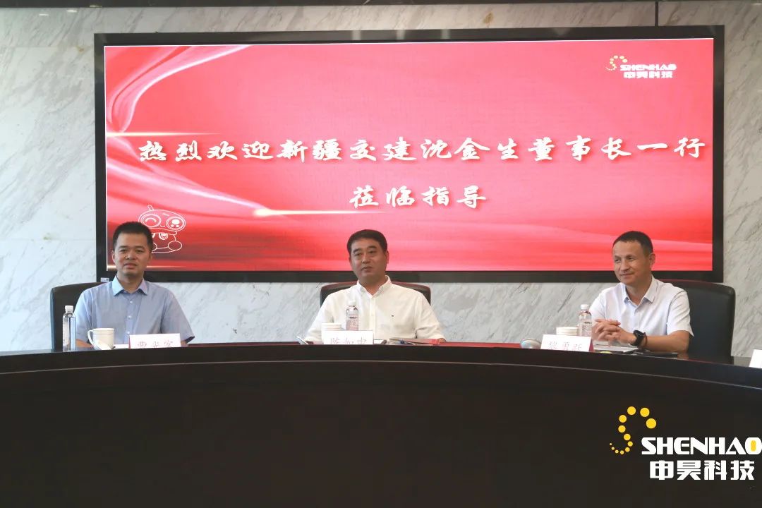 7月7日至8日,新疆交通建设集团股份有限公司党委书记、董事长沈金生一行莅临申昊科技参观交流,新疆交建集团副总经理林强、科技管理部、运营管理部负责人参加,申昊科技董事长陈如申、总经理黎勇跃等高管热情接待。