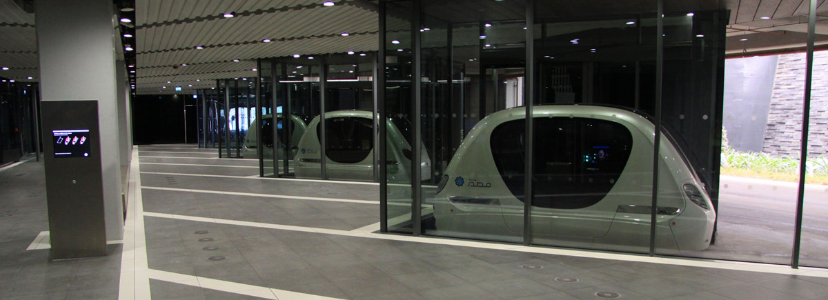 2getthere的第一个公交系统于1995年开发。在阿姆斯特丹史基浦机场(1997)和商业园区Rivium(1999)进行了试点项目。扩展的Rivium系统在2006年配备了第二代GRT车辆,并且今天仍在运行。2002年,临时的Floriade应用得以实现,其中包括4人座车辆。第一个永久性PRT系统于2010年11月28日在马斯达尔市(阿布扎比)对公众开放。