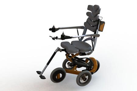 丹麦Capra 机器人公司基于 Mads Bendt 发明的独特专利轮架。轮架的灵感来自于 Mads 自 1986 年以来作为电动轮椅使用者的经历,当时他在滑翔机事故中摔断了脖子,使他的肩膀和下方瘫痪。因此,Mads 在驾驶和使用电动汽车方面拥有超过 160.000 小时的经验。他利用这些经验、他的教育和他的技能发明和开发了三款电动轮椅和最新的 Capra Robotics 使用的轮架。