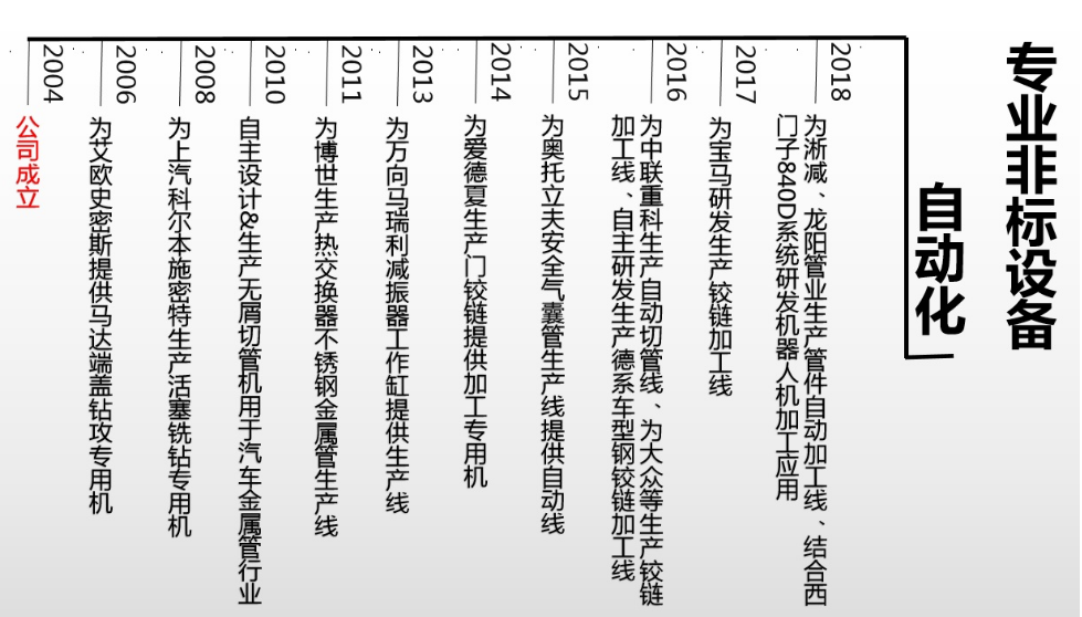 公司产品主要有:多工位转盘类加工专机及产线、管类加工产线、机器人系统集成&服务。