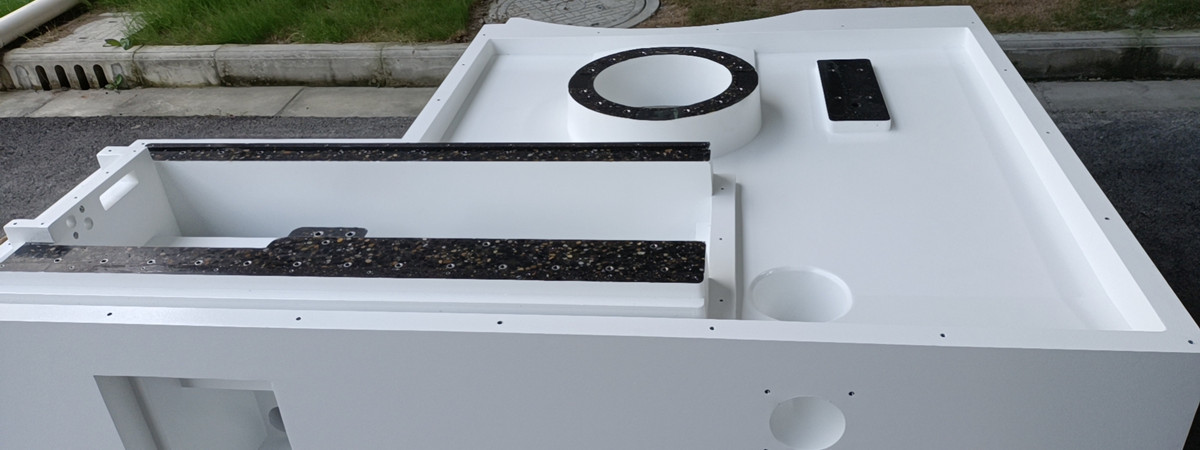 高强度矿物铸件配方(High Strength Mineral Casting)使得所生产的矿物铸件(Mineral casting)在抗压、抗弯、弹性模量等方面已经接近天然大理石。但作为一种高吸振、高阻尼的新材料,矿物铸件Mineral casting材料在产品的吸振、韧性、耐酸碱、复杂造型等方面又远远优于天然大理石。