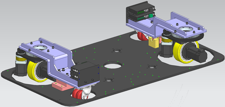 二、双舵轮驱动结构【适合1T以上负载,同时要求可以任意方向平移的场合】
