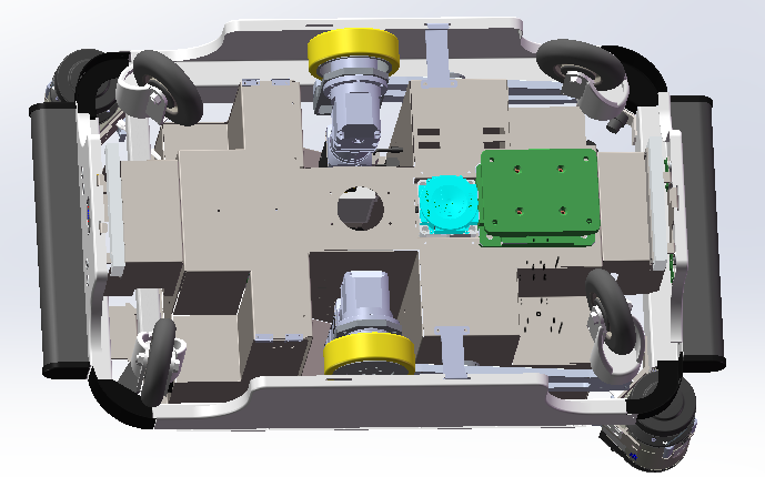 ②6轮结构:2个驱动轮在中间、4个万向轮在车的4个拐角。6轮结构,必须做特殊浮动处理,才可以保证2个驱动轮始终受力着地。
