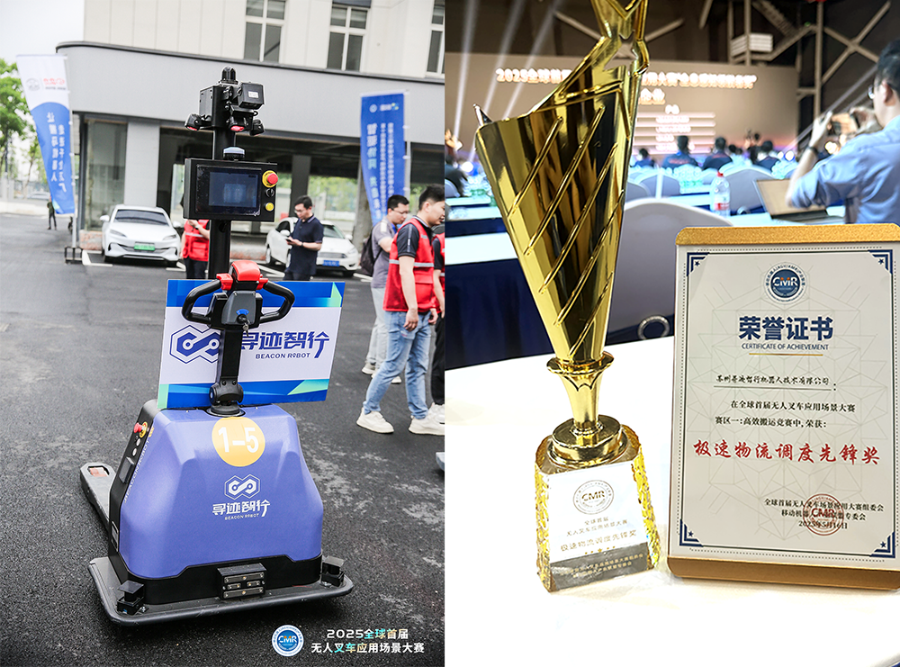 5月16日,由移动机器人产业联盟联合主办的全球首届无人叉车应用场景大赛在合肥盛大举办。作为智能搬运机器人领域的创新企业,寻迹智行携自主研发的搬运叉车BR-F15P亮相“高效搬运赛区”,与另外7家厂商同台竞技。在激烈的比拼中,寻迹智行凭借卓越的技术表现,一举斩获“极速物流调度先锋奖”,彰显了其在无人叉车领域的领先实力。