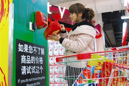 便民的价格查询机引入超市,扫描商品条形码实时查价