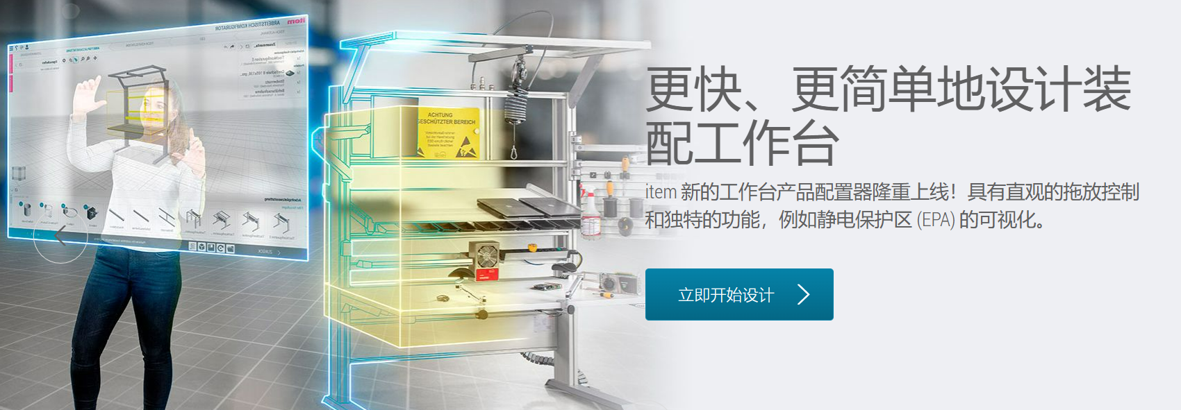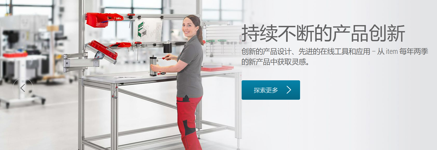 除了著名的 MB 工业铝型材装配系统之外,item 的精益生产系统、线性模组、工作台系统及楼梯平台系统为精益生产、自动化、人体工学和大型机械设施提供解决方案。