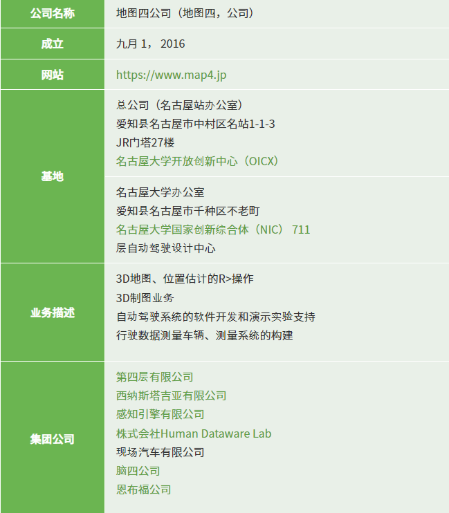 地图四公司成立于2016年,旨在将三维地图技术应用于自动驾驶系统等各个领域。 自成立以来,我们完善了三维地图和位置估计技术,为不同区域制作了三维地图,并将其用于自动驾驶的演示实验。