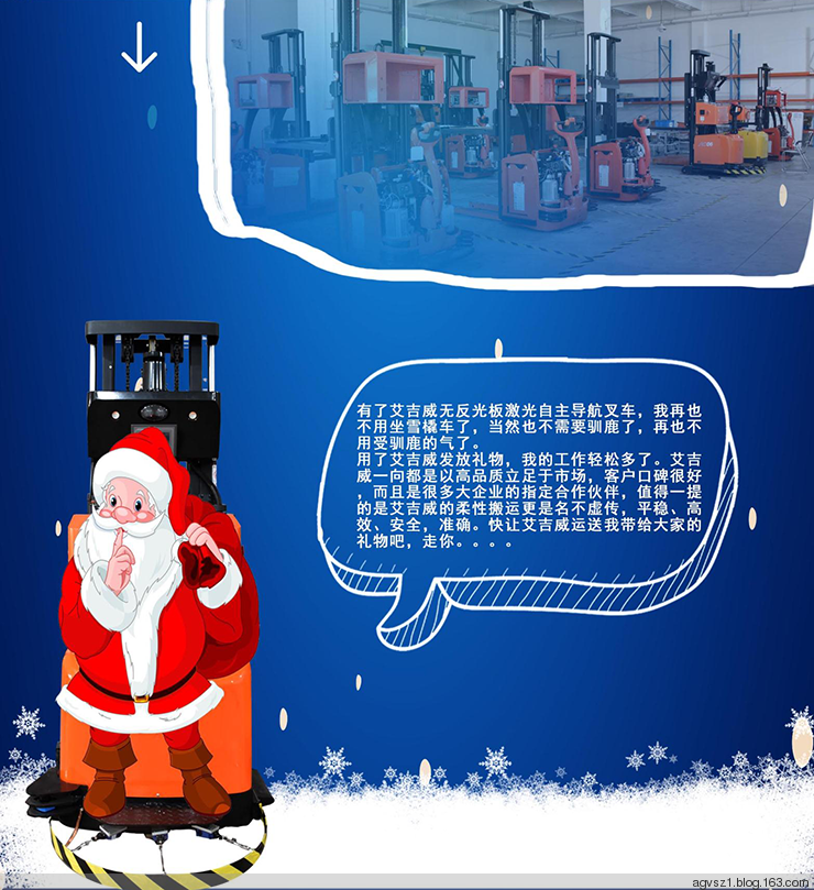 圣诞老人站在AGV上大喊:Merry Christmas!