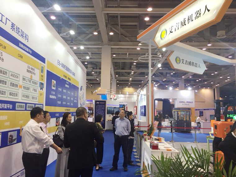 苏州艾吉威机器人有限公司受邀参加本届智博会,现场实力演绎多台无反光板激光自主导航叉车AGV在AGVS系统的调度下完成辊筒线托盘取放任务。在艾吉威展台前,大量观众兴趣盎然的驻足在艾吉威无反光板激光AGV旁,观看大屏幕播放的艾吉威无反光板激光AGV在国际化智能工厂中的应用案例,观众赞声不断,更有人不断向艾吉威工作人员追问细节。