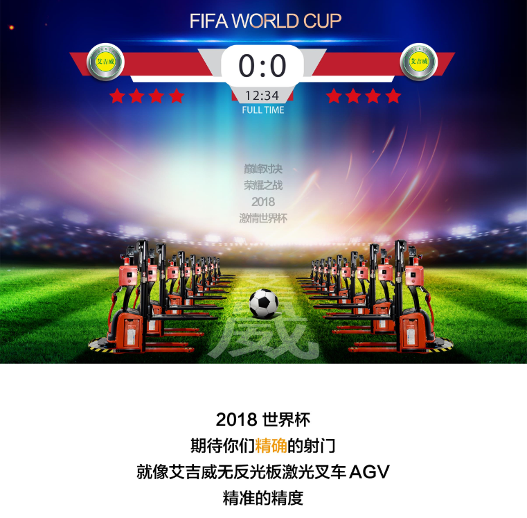 最后,2018年的世界杯,期待你们精确的射门,如同艾吉威无反光板激光叉车AGV精准的精度,默默给你们打Call哦!