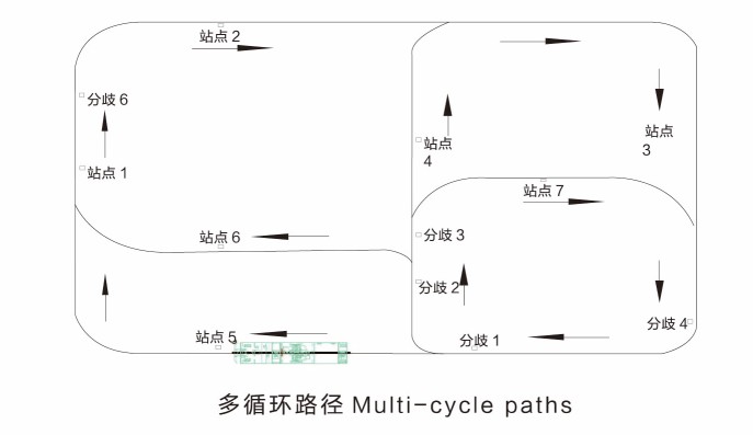 AGV路径规划,包括单循环路径、双循环路径和多循环路径。