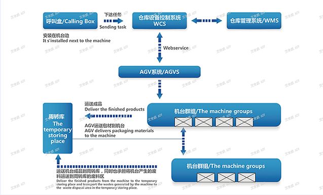AGV系统是工厂自动化系统的一个重要组成部分,它主要执行原材料的供送、 成品的转移输送、仓储货物柔性配送等功能。在整个工厂生产制造过程中,AGV系统需要与MES(制造执行系统)、ERP内部管理系统、WMS(仓储管理系统)、LCS(生产线控制系统)、RFID(托盘管理系统)等进行数据交换实现无缝对接。