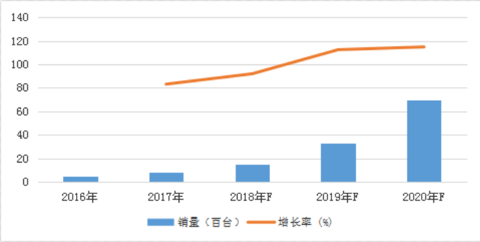 中国制造2025对中国制造业向智能升级转型提出了更高的要求,而作为物流业重要一环的叉车AGV行业自然也不例外。在这制造业需求中,国内传统叉车依然每年保持着较高的增长,我国叉车AGV机器人在2014年之前市场有3家左右的企业在销售,2014之后,叉车AGV企业雨后春笋,诸多企业纷纷切入市场,截止2017年国内运行的叉车AGV达到套,2018年近4000台。预计到2020将突破6000台。
