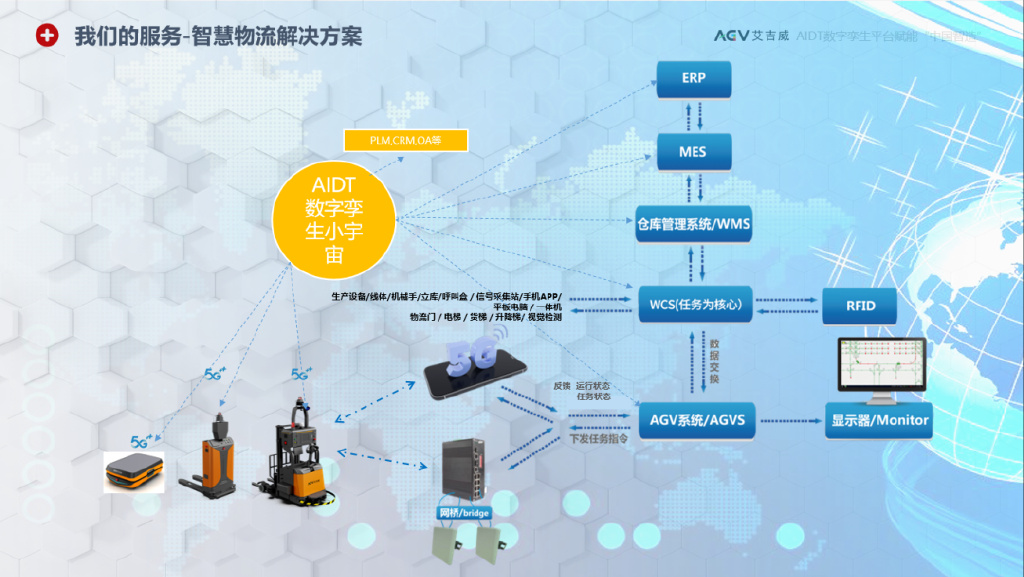艾吉威机器人十余年移动机器人&数字化平台研发设计经验,基于自主研发移动机器人及新一代数字技术,为制造业实现少人化、无人化、数字化生产及高质量发展提供科技助力,艾吉威机器人AIDT平台结合人工智能、数字孪生、物流机器人、工业5G等技术,通过前沿科技和工业数字孪生为“中国智造”赋能。