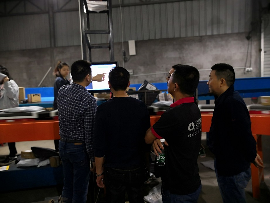 番禺百世领导在现场与我司领导确认,其运营管理的番禺大石镇分拣中心由我司承建,采用智能动车轨道分拣方案建设;同时谢总一行也针对其分拣中心特点,对自动化分拣建设提出了相关要求和建议。