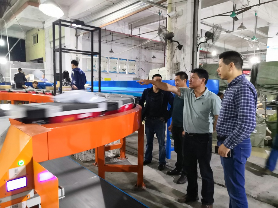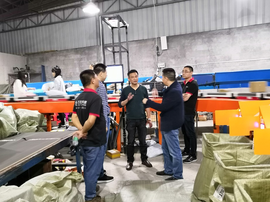 广州市番禺区大石镇百世快递总经理一行考察花都狮岭自动化分拣设备,现场确认采用三维通自动化分拣方案
