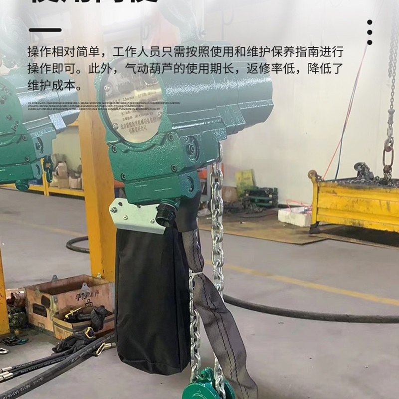 4. 通过测试与调整达到满意状态:在完成上述步骤后,建议进行一系列的测试和调整,以确保气动葫芦能够满足您的实际需求。您可以尝试不同的气源压力、流量控制器设置和节流阀调节,逐步找到最适合您作业的参数组合。