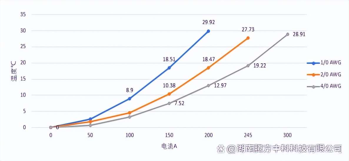 5、额定电流300A:压接线径为95mm²线缆时,给定300A电流,测其两小时以上的温升,图示正面温升没有超过30℃,证明其能承受300A电流。