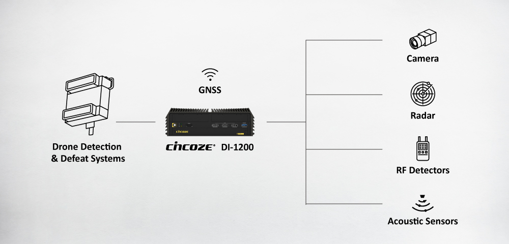 Cincoze 的客户为亚太反无人机技术解决方案供货商,专注于无人机侦测与防御技术。他们将 Cincoze DI-1200整合至其稳定高性能的无人机侦测与反制系统中,不仅大幅提升部队对低空无人机的感知能力,更维护作战的隐密性与安全,强化整体作战效能。