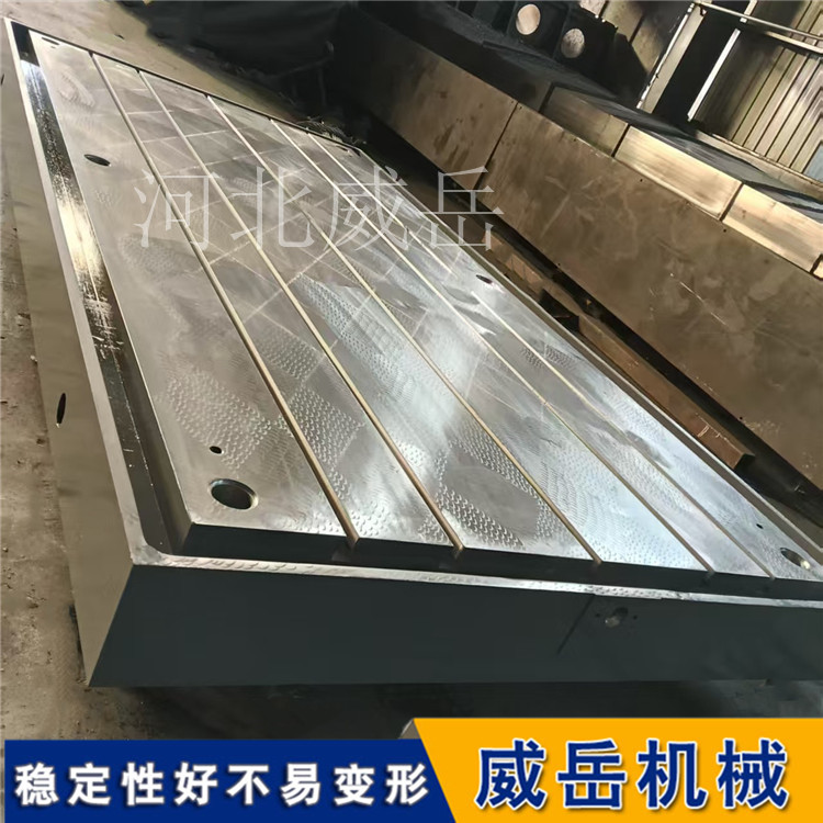 二个细节:时效处理,决定精度是否“久”。T型槽铁地板浇筑后,须经过时效处理,去掉铸造应力,否则使用中会慢慢变形,精度失效。但时效处理耗时耗力,很多厂家会偷工减料:要么缩短时效时间,要么直接省略,只做简单的自然冷。正规厂家的时效处理分为两种,自然时效(放置2-3个月,成本低但效果稳定)和人工时效(高温回火,效率高,适合高精度产品),无论哪种,都会在产品参数中明确标注。采购时一定要问清时效方式和时长,避免买到“一次性精度”的产品。