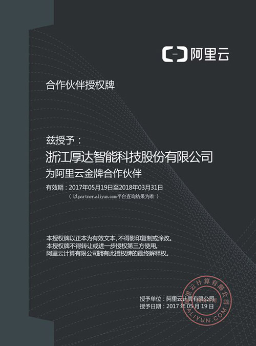 双方根据合作协议,厚达智能将基于阿里云计算,为客户搭建智能工厂云平台,根据客户的需求,整合优势资源,共同为客户提供最优质的服务。同时,阿里云也将成为厚达智能在大数据和云计算领域的合作伙伴。阿里云将向厚达智能开放在云计算领域积累多年的专业技术与服务,对厚达智能的系统平台提供大数据和云计算的必要支撑,此举,将进一步推动智能工厂的进程,助力于企业快速发展。