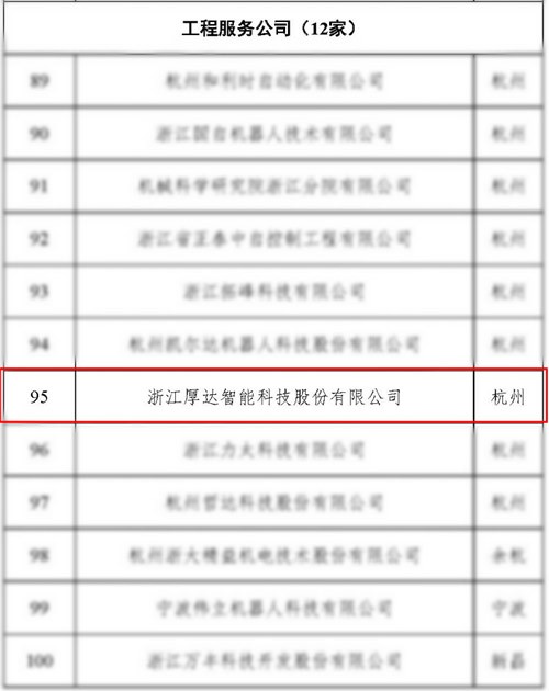 厚达智能入选浙江省高端装备制造业(智能制造)12家工程服务公司